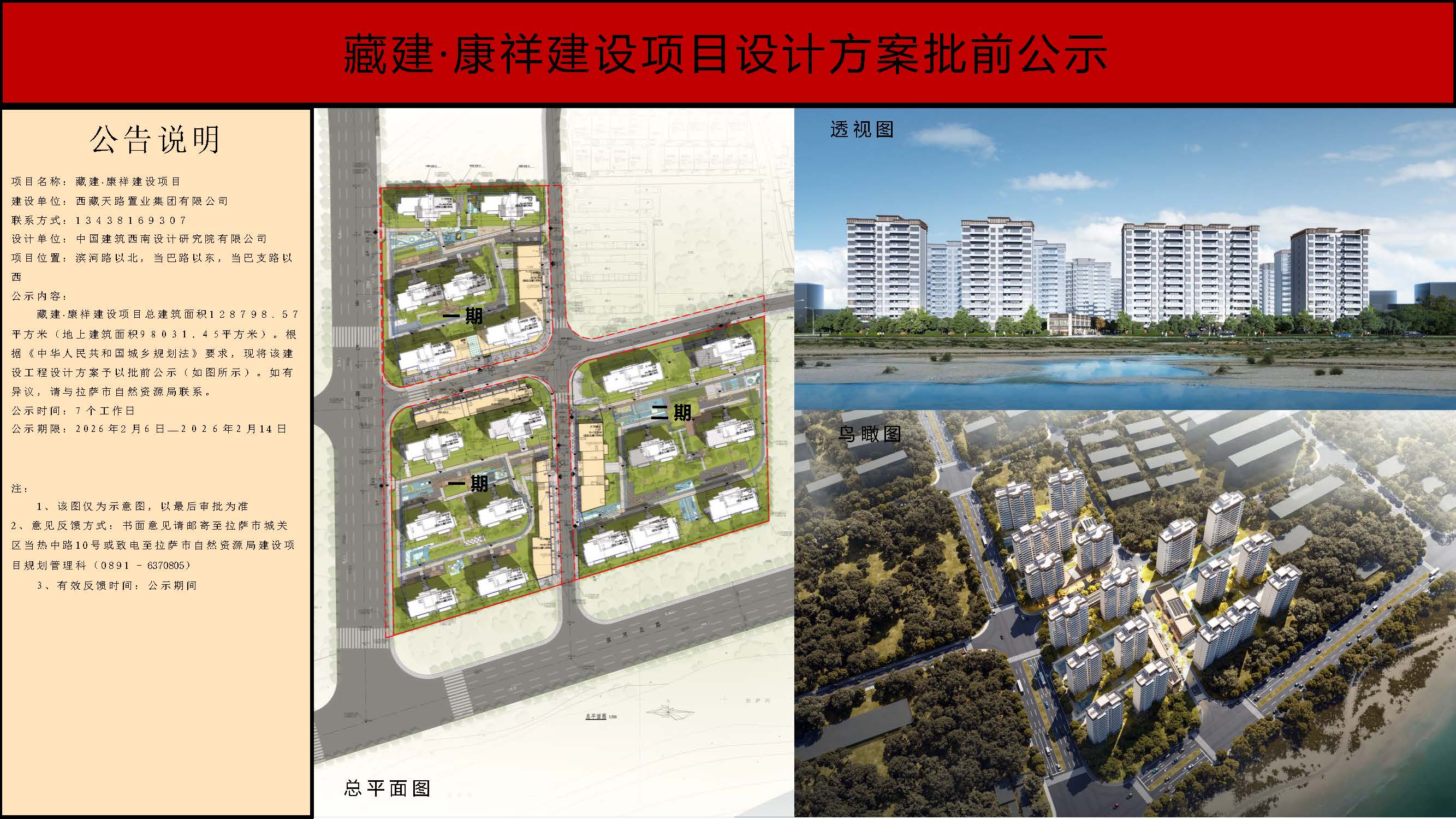根据《中华人民共和国城乡规划法》及《拉萨市城乡规划条例》相关规定,现对拉萨·拉措广场建设项目、藏建·康祥项目(二期)《建设工程规划许可证》进行批前公示。