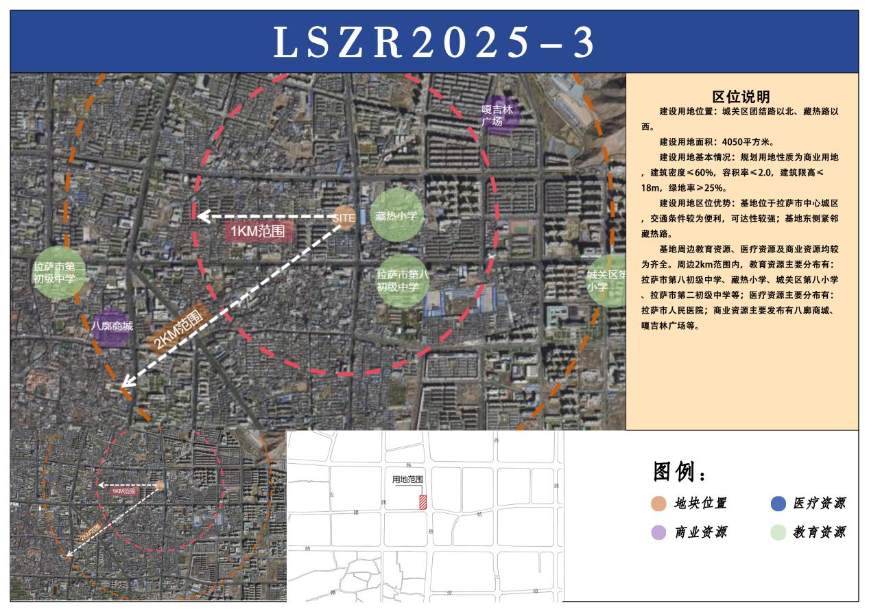 根据《中华人民共和国土地管理法》《中华人民共和国城市房地产管理法》《中华人民共和国土地管理法实施条例》《招标拍卖挂牌出让国有建设用地使用权规定》(国土资源部第39号令)《西藏自治区公共资源交易目录(2021版)的通知》(藏政发〔2021〕8号)和《西藏自治区人民政府办公厅印发关于进一步规范招投标等公共资源交易若干意见(试行)的通知》(藏政办发〔2021〕14号)等法律法规及相关政策规定,经拉萨市人民政府批准,拉萨市自然资源局决定对编号LSZR2025-3号国有建设用地使用权以挂牌方式进行公开出让,现将有关事项公告如下: