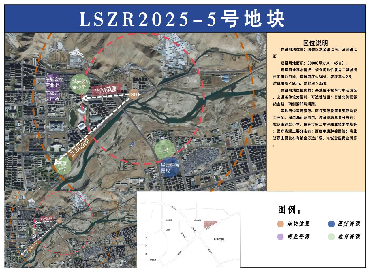 根据《中华人民共和国土地管理法》《中华人民共和国城市房地产管理法》《中华人民共和国土地管理法实施条例》《招标拍卖挂牌出让国有建设用地使用权规定》(国土资源部第39号令)《西藏自治区公共资源交易目录(2021版)的通知》(藏政发〔2021〕8号)和《西藏自治区人民政府办公厅印发关于进一步规范招投标等公共资源交易若干意见(试行)的通知》(藏政办发〔2021〕14号)等法律法规及相关政策规定,经拉萨市人民政府批准,拉萨市自然资源局决定对编号LSZR2025-5号国有建设用地使用权以挂牌方式进行公开出让,现将有关事项公告如下: